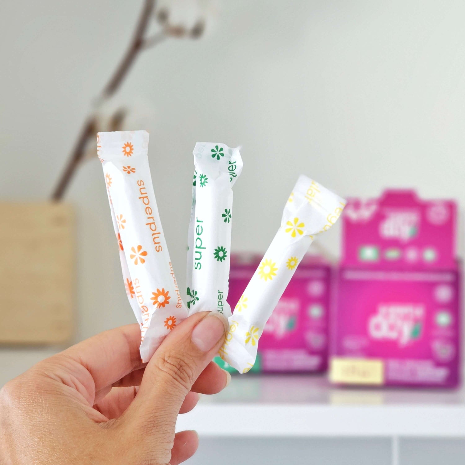 Dauguma tamponų pakuojami į plastiką, tačiau GENTLE DAY® tamponai vieni pirmųjų pradėti pakuoti į individualius popierinius apvalkalus. Dėžutės iš perdirbamo popieriaus.