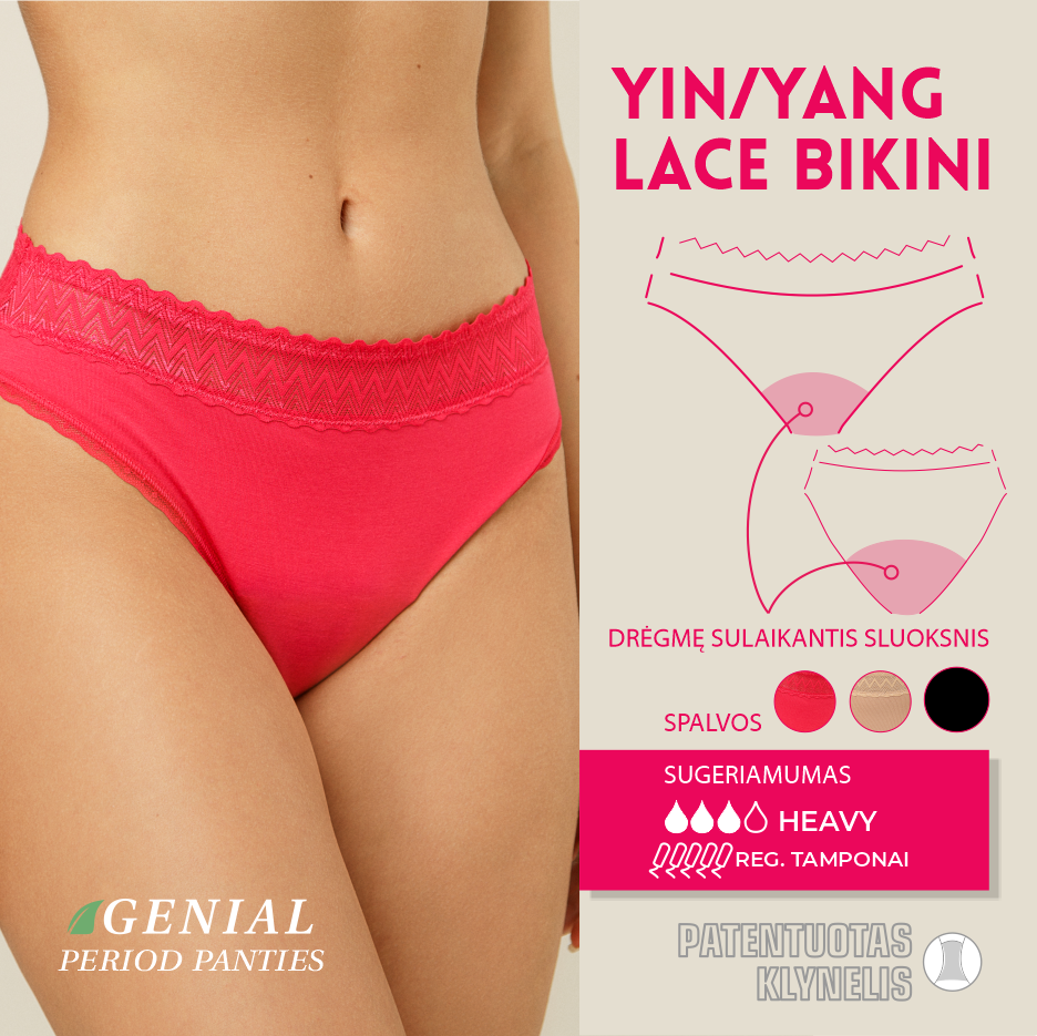 Menstruacinės kelnaitės „Lace Bikini, Yin/Yang“