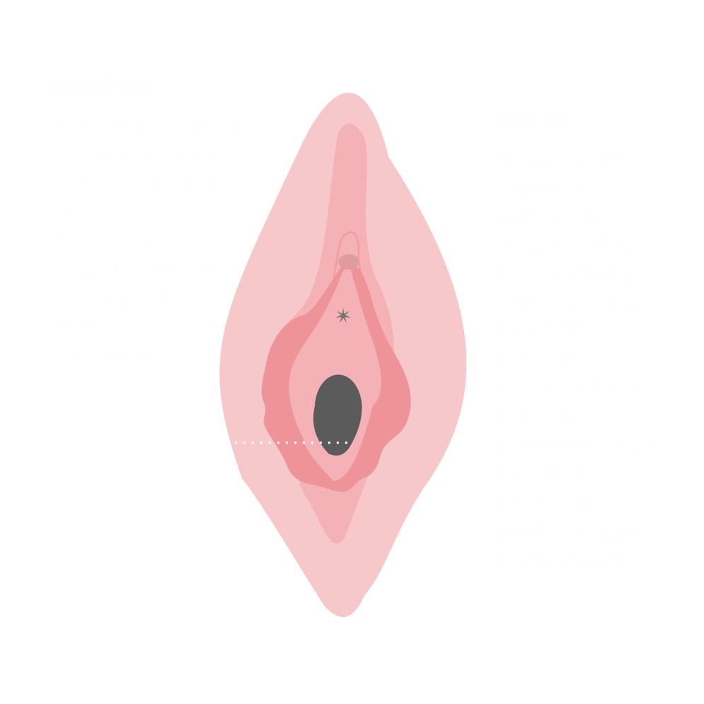 Atsinaujinančios makšties infekcijos, sudirgusi vulvos oda – tai dažni moterų nusiskundimai. Jie vyksta dėl hormonų pokyčių nuo pat paauglystės iki menopauzės. Tam įtakos turi ir sintetiniai įklotai, sintetinės kelnaitės, aptemti drabužiai, plovikliai ir audinių minkštikliai, kvepalai intymios higienos priemonėse, nesubalansuotas produktų pH.